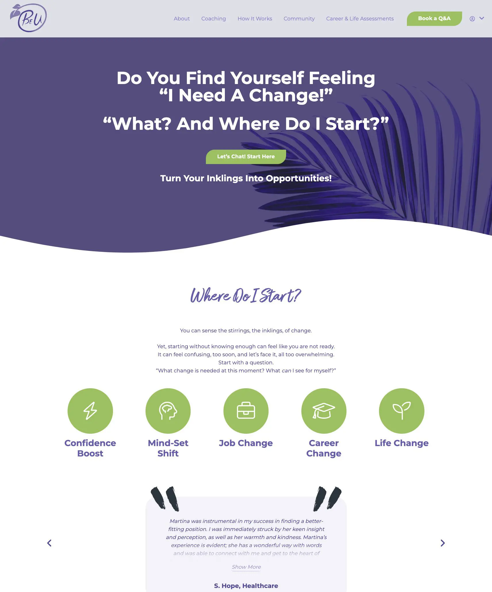 BEing U Coaching was in need of an all-encompassing website overhaul that would reflect their innovative coaching approach and services. They needed a template site with an enhanced brand image, which required adjustments to their brand colours. They also wanted to incorporate their unique infographic design concepts into the design. A crucial part of the project was to structure a substantial amount of content in an easily accessible and digestible format. Additionally, they needed a harmonious integration of their BuddyBoss community platform styling with the site’s overall design. The client also required an efficient Learning Management System (LMS) for their program “Courage to Change”, a secure platform for private group discussions among course members, and an effective e-commerce setup for selling courses and memberships.