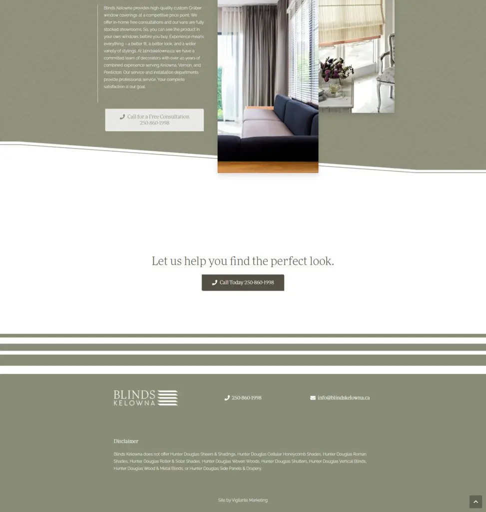 Blinds Kelowna is a retailer for the Graber brand of blinds and shades. They offer a wide selection of styles and the best warranty in the business! The owner, Donna Kerr, takes exceptional pride in helping her clients find the perfect window coverings to fit their homes. They offer free in-home estimates and a team of decorators with over 40 years of combined experience serving Kelowna, Vernon, and Penticton.