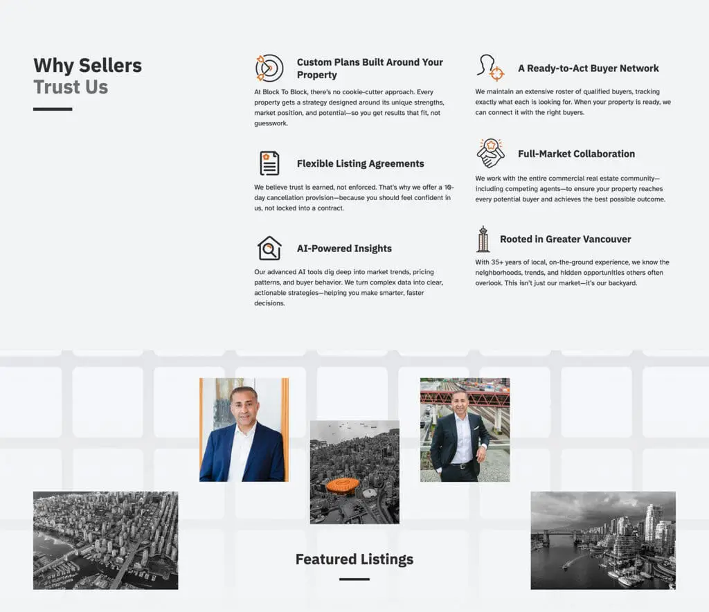 A cohesive brand and digital presence that positions Block to Block Commercial as a trusted commercial real estate partner in the Okanagan, helping businesses and investors navigate opportunities with confidence.