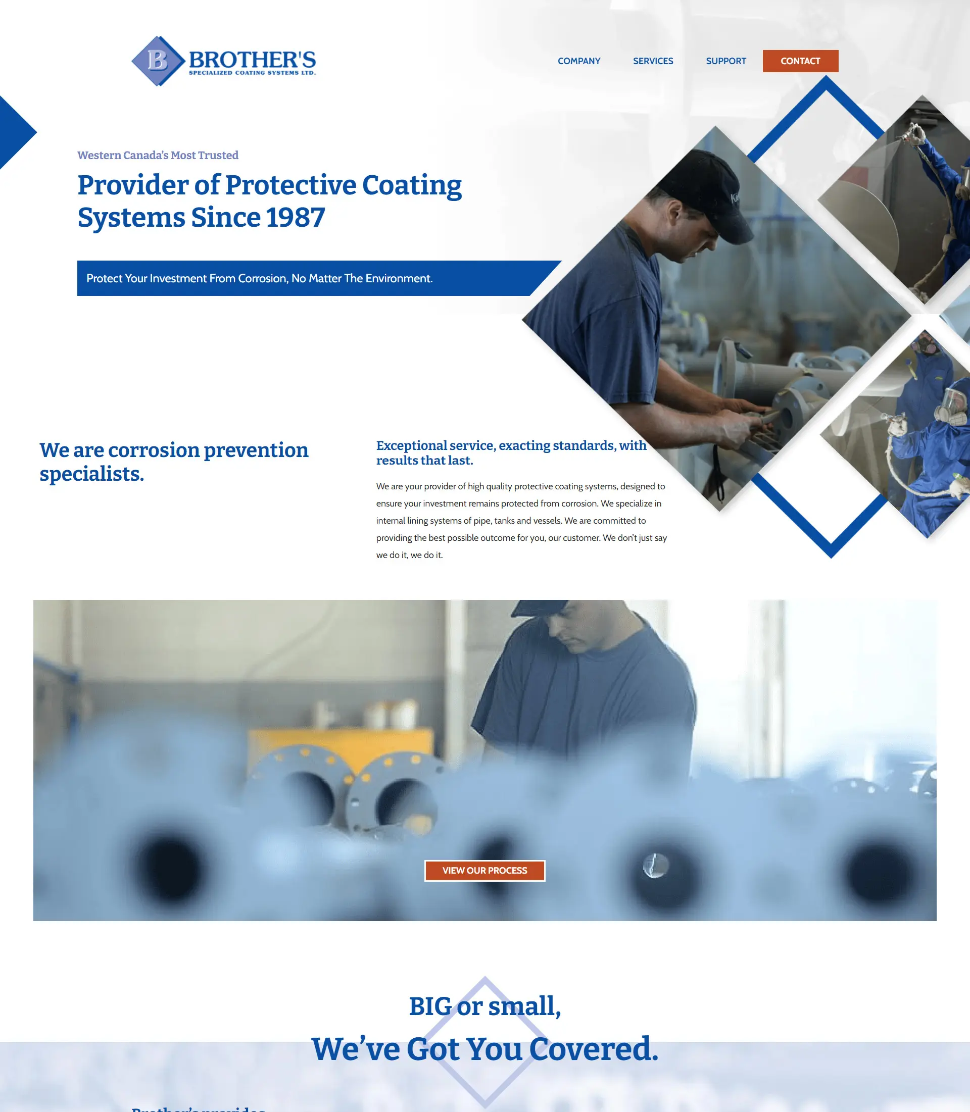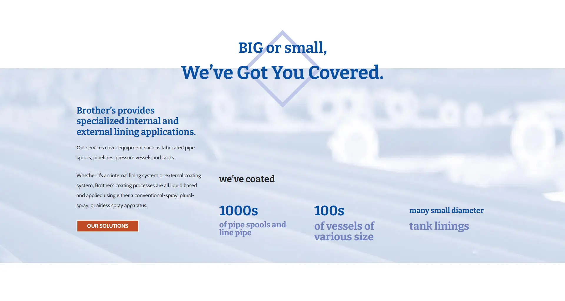 Positioning Brother’s Coating as a dependable and experienced brand was essential, so we ensured their new website copy reflected this. We marketed Brother’s Coating by showcasing their heritage and highlighting that they have been their client’s provider of protective coating systems since 1987. Establishing their business as an experienced brand was done by representing their experience through social proof statistics and figures while emphasizing the range of services they offer on the homepage of the website giving users the instant impression that Brother’s Coating was an industry leader.