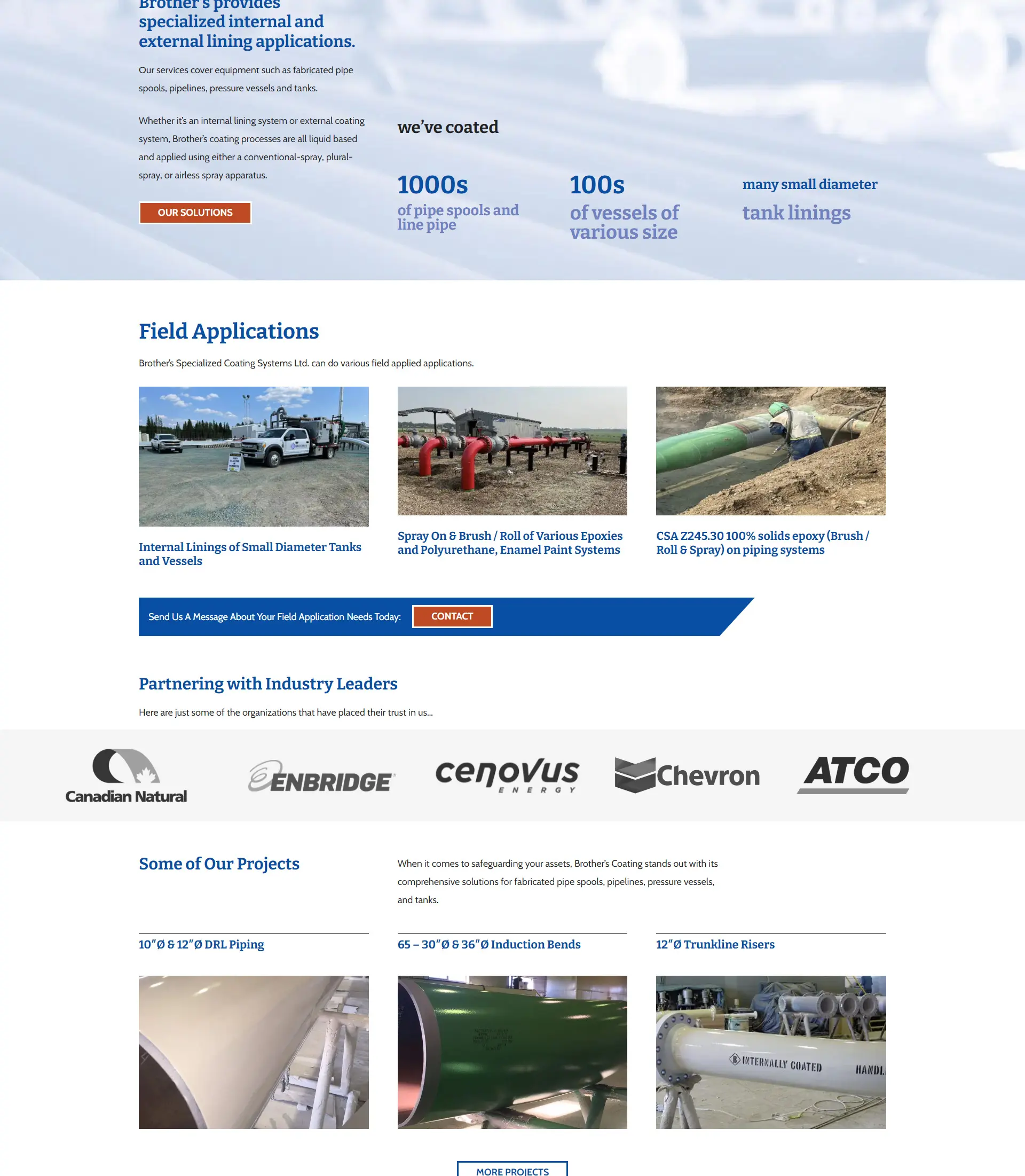 Brother’s Coating Systems has provided high-quality coating applications to Western Canadian clients in the oil & gas, water treatment, and wastewater industries since 1987. Making customer satisfaction their main goal, Brother’s Coating has built its reputation on being knowledgeable, honest, and straightforward, while ensuring client projects are finished on budget and on time. Brother’s Coating’s highly trained professionals and proven application lining process allow for clear direction and industry-leading application and quality control measures; with proven advantages in health and safety for employees and a strong commitment to the environment through effective environmental policies and waste management procedures.