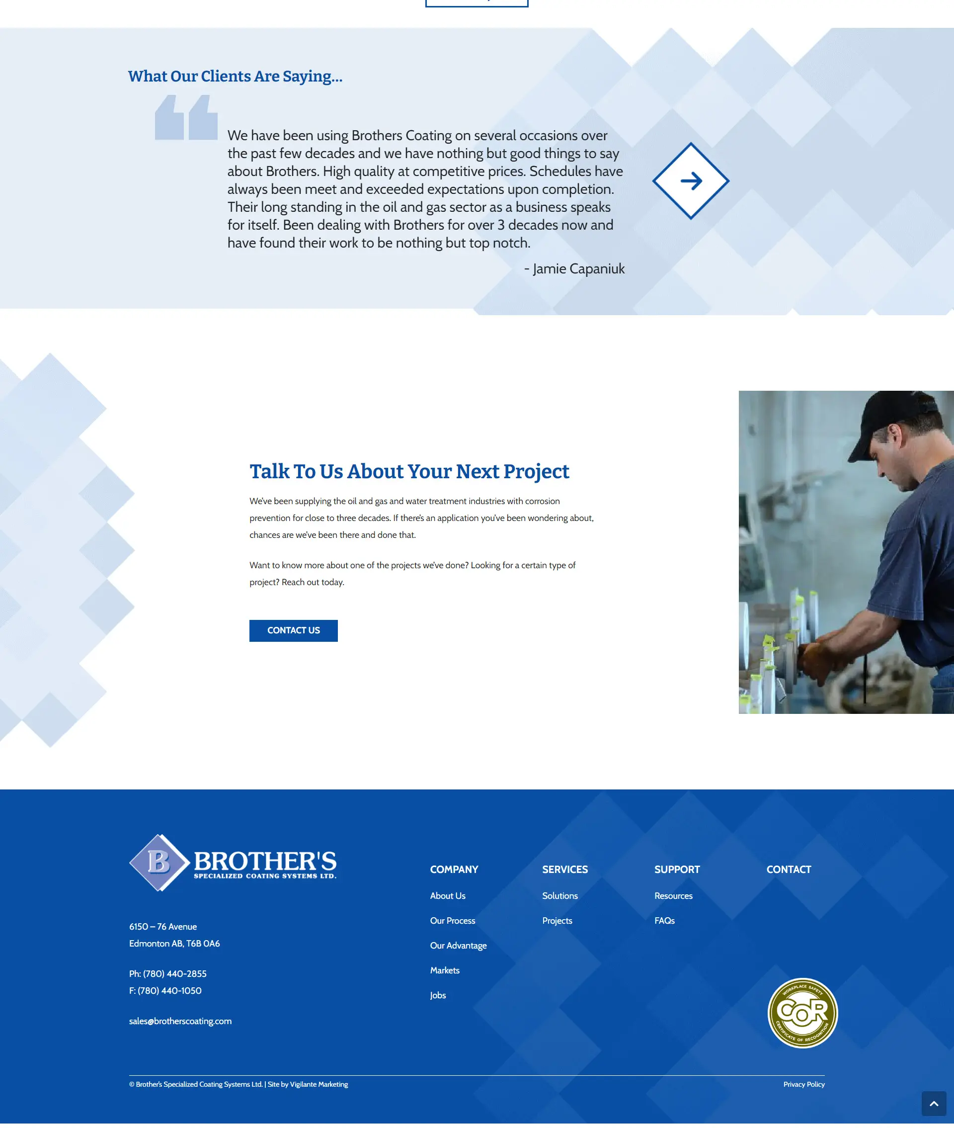 Following our design of the site, Brian developed the new Brother’s Coating website with ease. Brian implemented the new clean design while integrating interesting geometric imagery elements which created a more consistent look to all website pages, giving website users a better feel of the website that was more professional and put together.