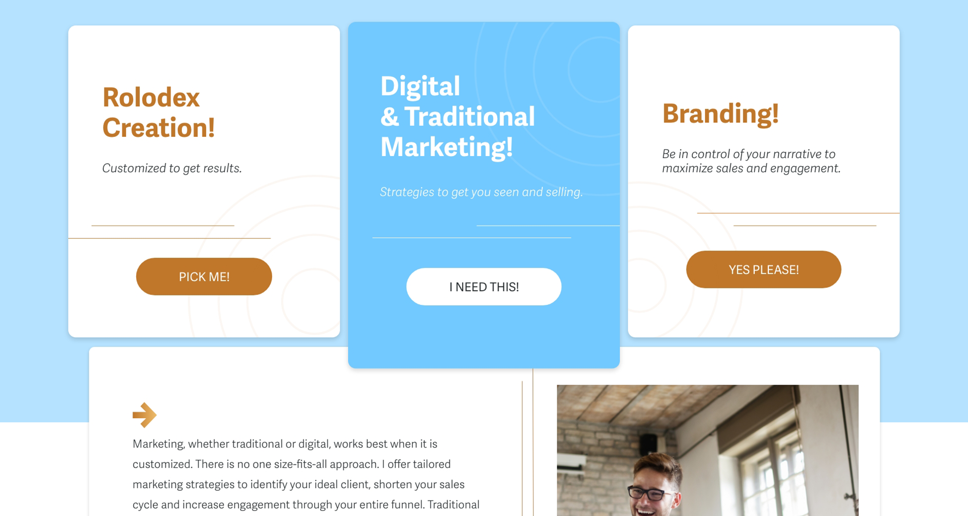 Joyce, owner of Capital Velocity Group, did not have a previous site and needed a refreshed, professional and contemporary look. We recommended that the content reflect a fun, straight-shooting tone with a bit of pop, which showed off her genuine personality. In addition, the site needed content and design elements to display and highlight her offerings: Rolodex, Digital Marketing, and Branding and Storytelling. Her goal was clearly written content that highlighted client services and strengths.