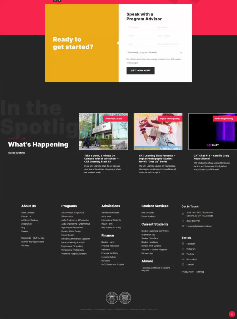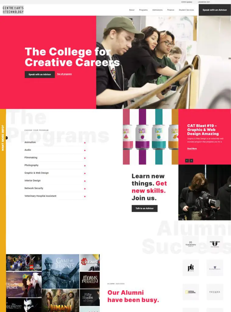 The Centre for Arts and Technology is a creative college located in Kelowna, BC at the Landmark Centre. It is one of Canada’s leading schools in digital arts and technical training. Its foundation was built over 30 years ago by experts in both media training and educational excellence.