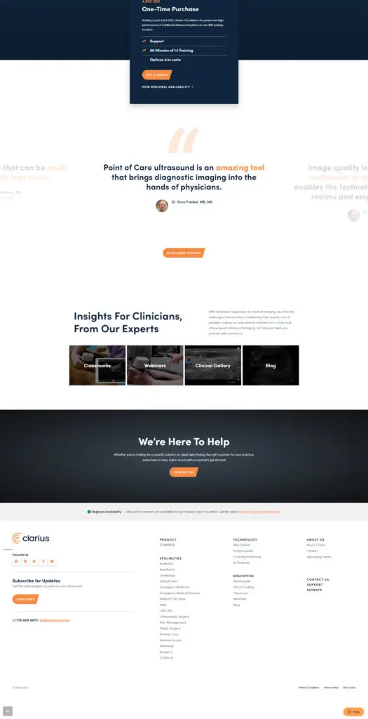 Next, our VM developer, Peter, built a robust and advanced interface in the backend of the eCommerce website to allow Clarius team members to add a multitude of content that could easily be interconnected into all of their products and services. In addition, this functionality gave the client the ability to relate products to each testimonial, healthcare sector, classroom, webinar, event, and more. The built-in automation of this operation allows content to be added once and distributed automatically across the entire site. In addition, Peter developed an exuberant amount of custom coding to create the content interconnection and advanced displays of the custom data. Overall, the VM team created a website that can easily handle over 1200 different content pieces and keep those pieces well organized, categorized, and manageable by the Clarius team. Including making the site translatable into seven other languages that each incorporate their unique pricing and feature sets.
