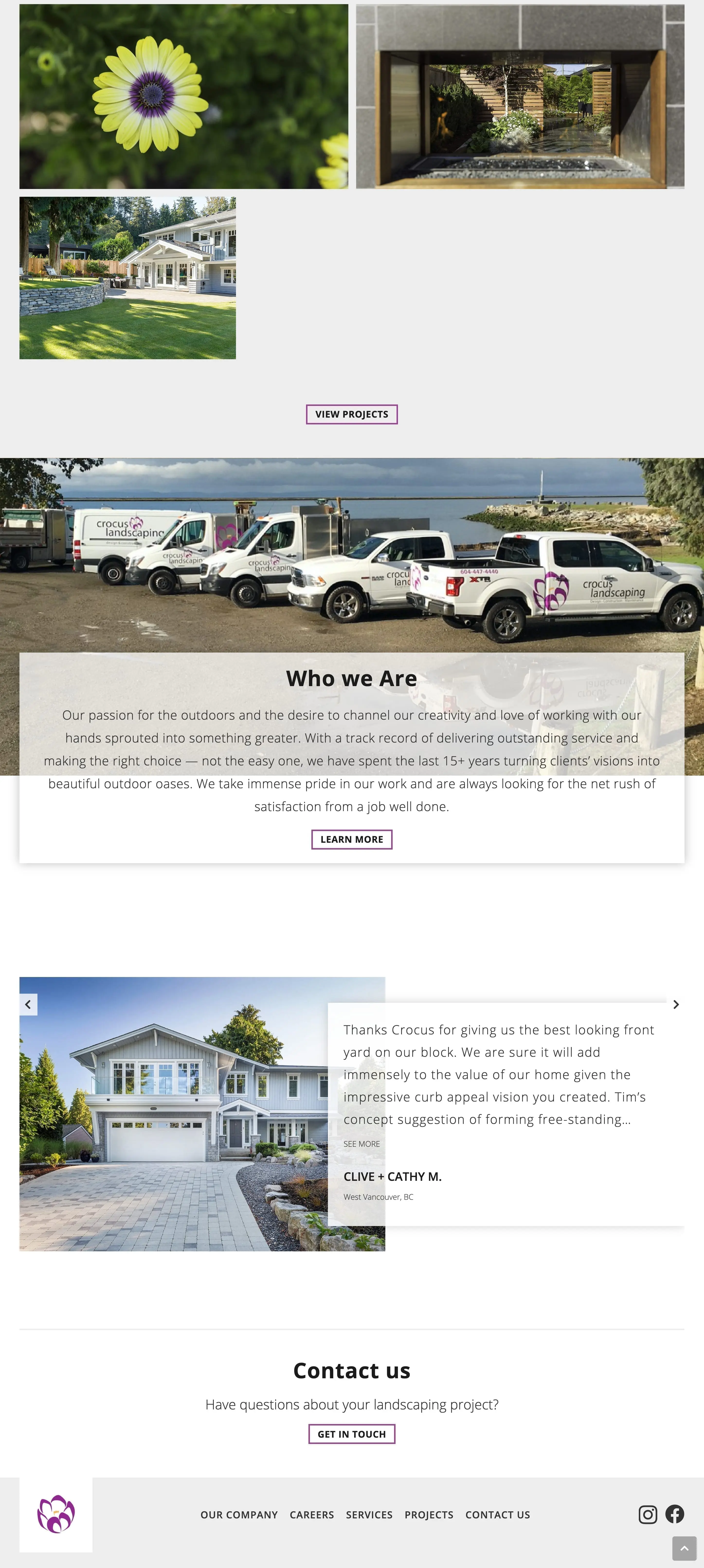 While we primarily service the western portion of the lower mainland, we pride ourselves on providing a high quality service backed by our core values. Integrity, accountability, and creativity are at the forefront of every decision we make at Crocus. We are small enough to have personal touch and direct contact with all of our clients, but big enough to handle even the largest tasks with ease.