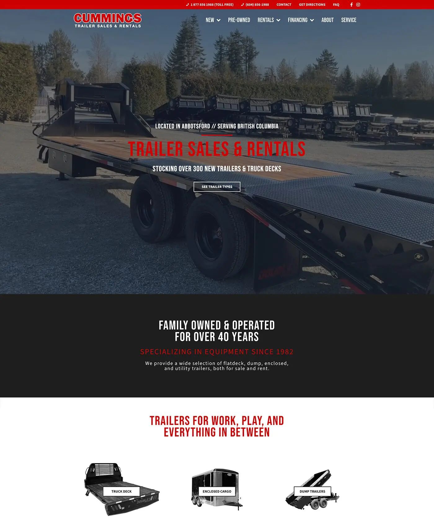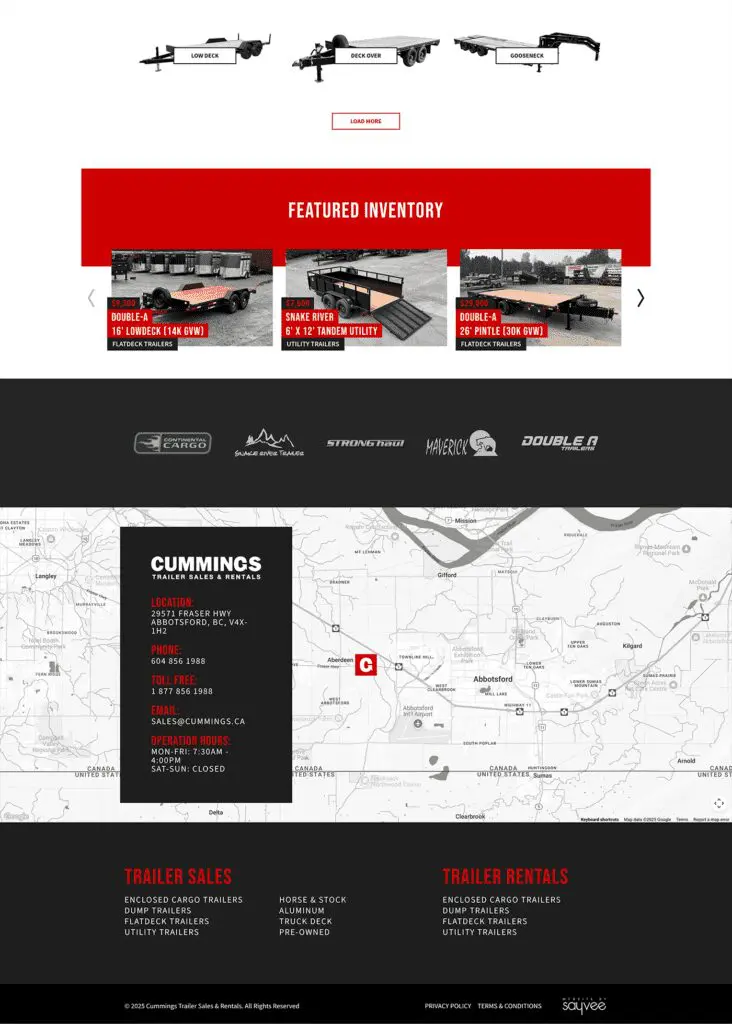 We developed a comprehensive website for Cummings Trailers that enhances their online presence and showcases the variety and quality of their products: