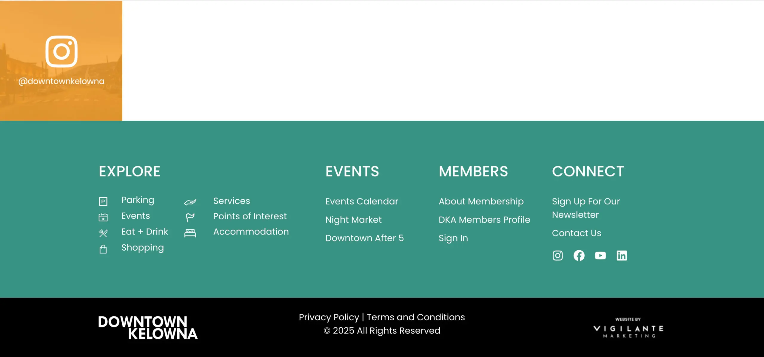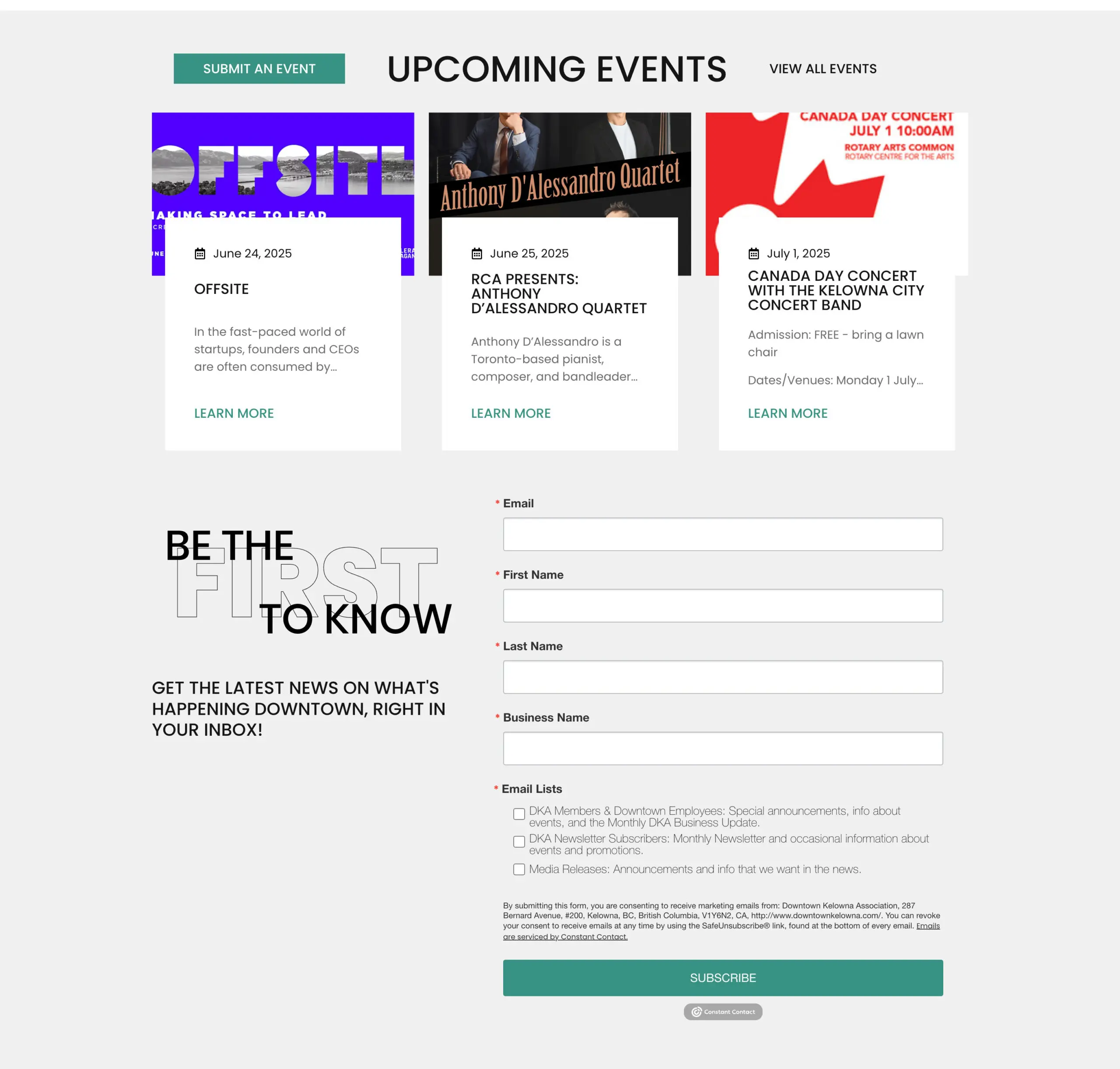 DKA needed a website that could serve a wide range of users — from business owners looking for resources to residents and tourists seeking events, dining, and shopping. Their previous site didn’t reflect the energy of downtown Kelowna and lacked the functionality to support engagement, event promotion, and member services.