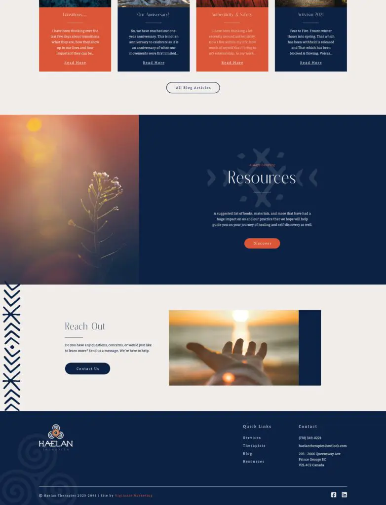 The result of Vigilante Marketing’s work was a visually stunning website that provided a unique and easy-to-use platform for users to book appointments and access resources. The new design also helped Haelan Therapies differentiate themselves from other counselling service providers in the market.