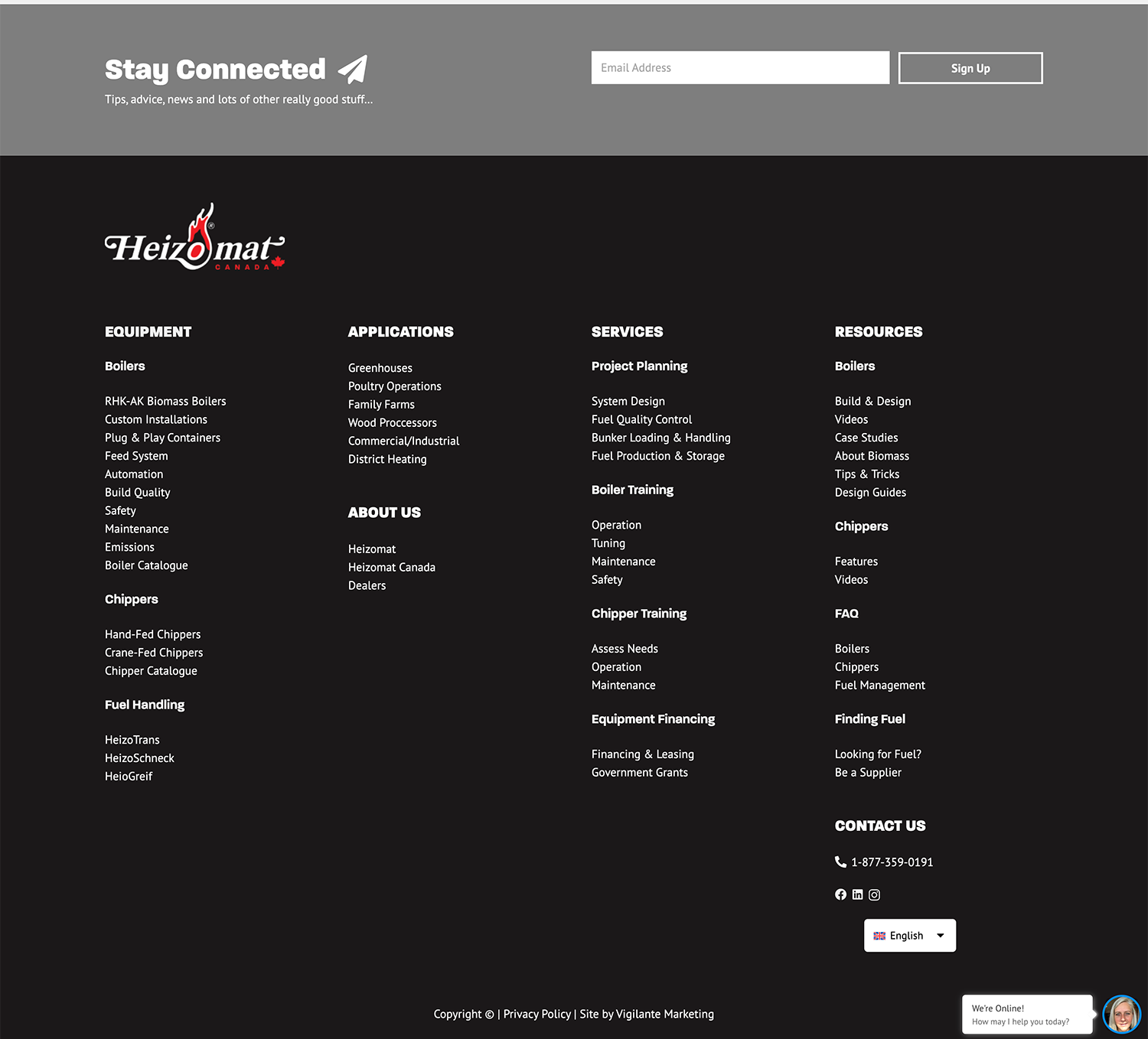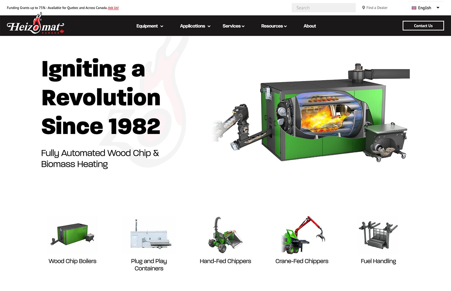 Heizomat Canada needed a website that could clearly communicate the benefits and technical capabilities of their biomass heating systems. The site needed to educate visitors about the technology, showcase applications across industries, and provide a professional platform for inquiries from customers interested in transitioning to renewable heating solutions.