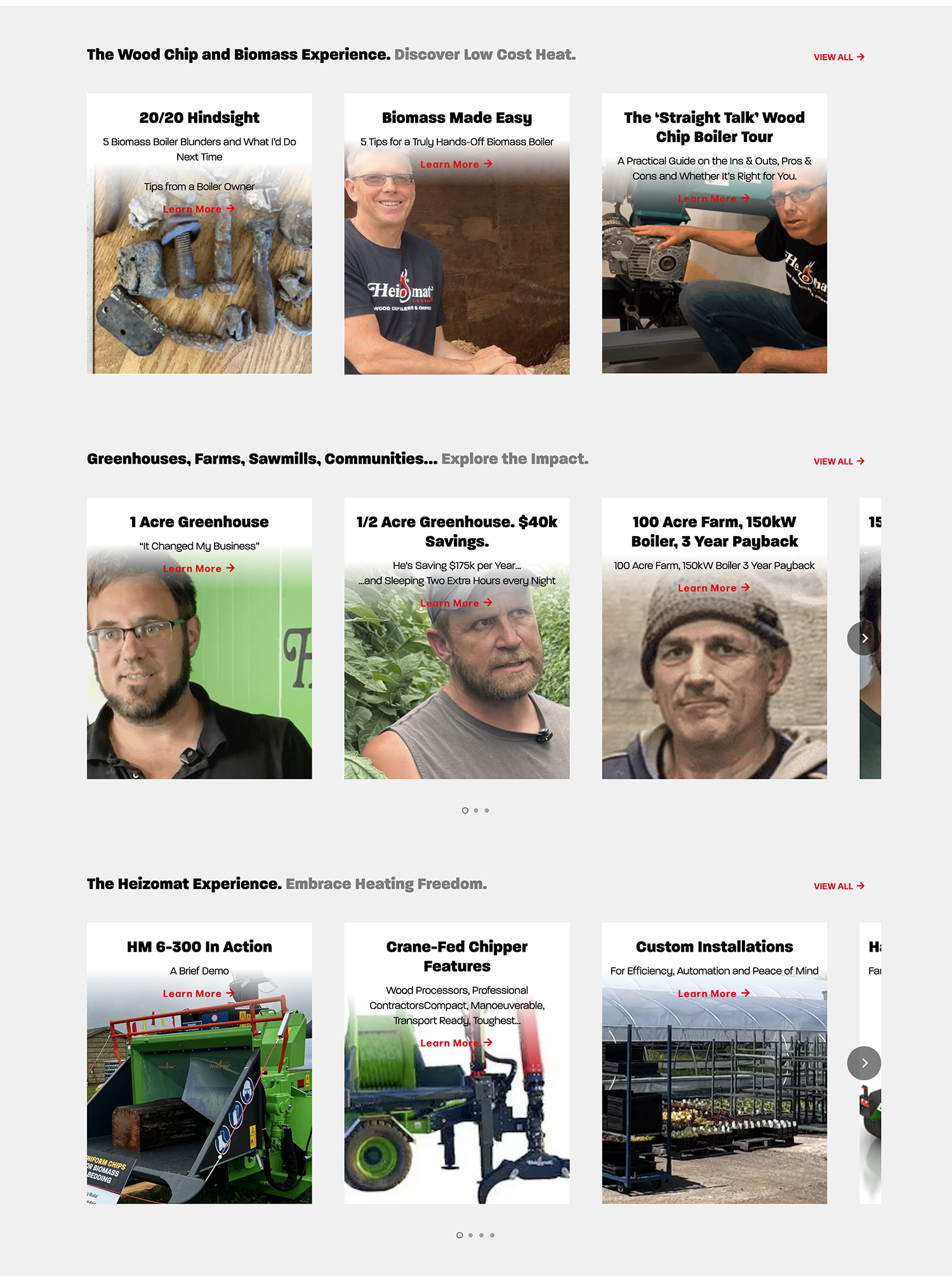 We designed and developed a streamlined website that presents Heizomat Canada’s technology and solutions in a clear, accessible way. The site introduces biomass heating systems, explains how the technology works, and highlights the benefits of renewable heating for agricultural, commercial, and institutional users. We structured the content to guide visitors through system options, applications, and company expertise while making it easy to request more information. The design balances technical credibility with approachable messaging, helping potential customers understand the value of biomass energy.