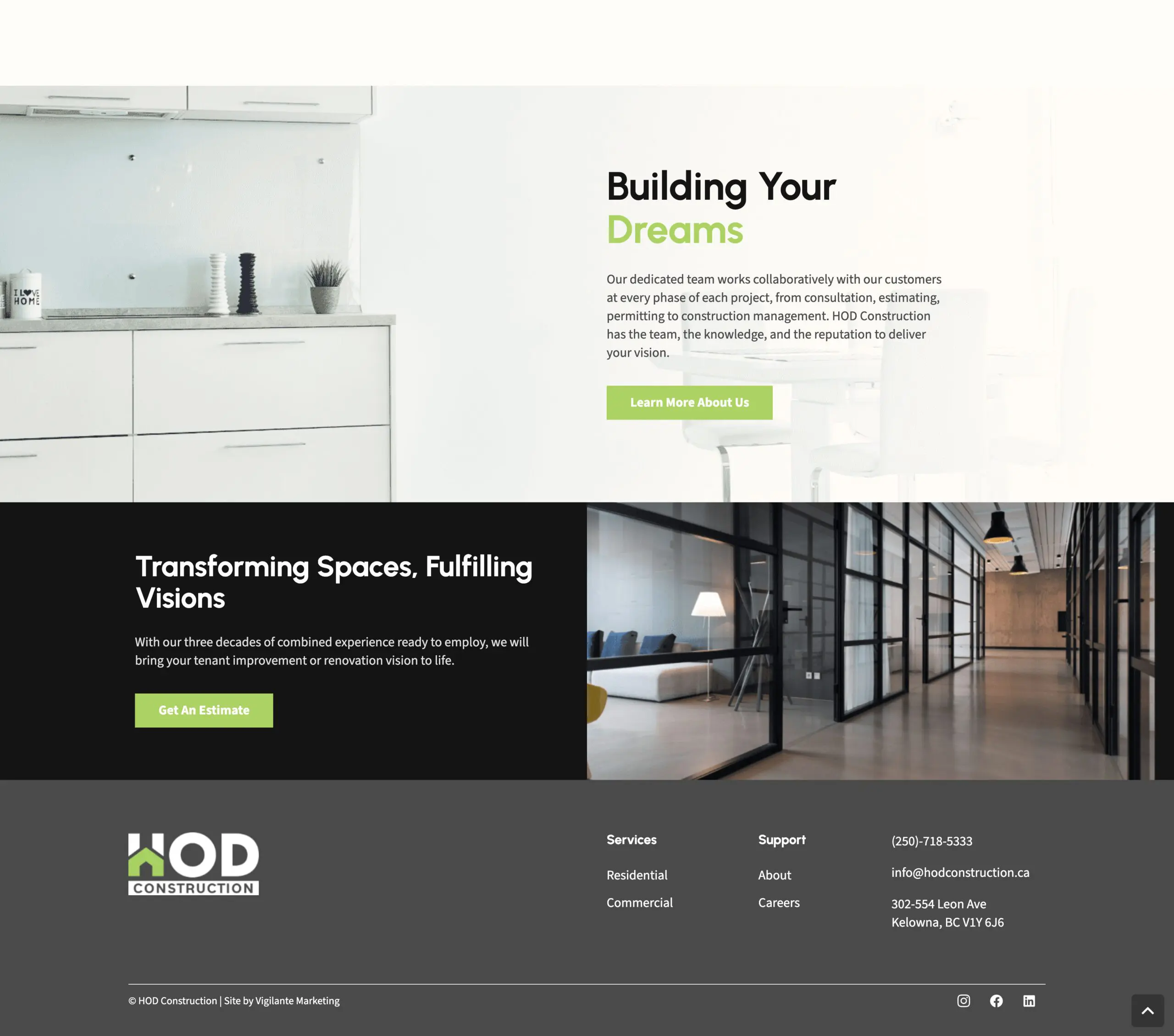 Vigilante Marketing took on the challenge with enthusiasm, recognizing the opportunity to rejuvenate HOD Construction’s online presence. We delivered a sleek, modern website design that not only reflects HOD Construction’s brand ethos but also enhances user engagement through intuitive navigation and interactive elements. Our team focused on incorporating high-quality professional photography that vividly showcases the company’s projects, embedding a sense of trust and reliability among prospective clients.