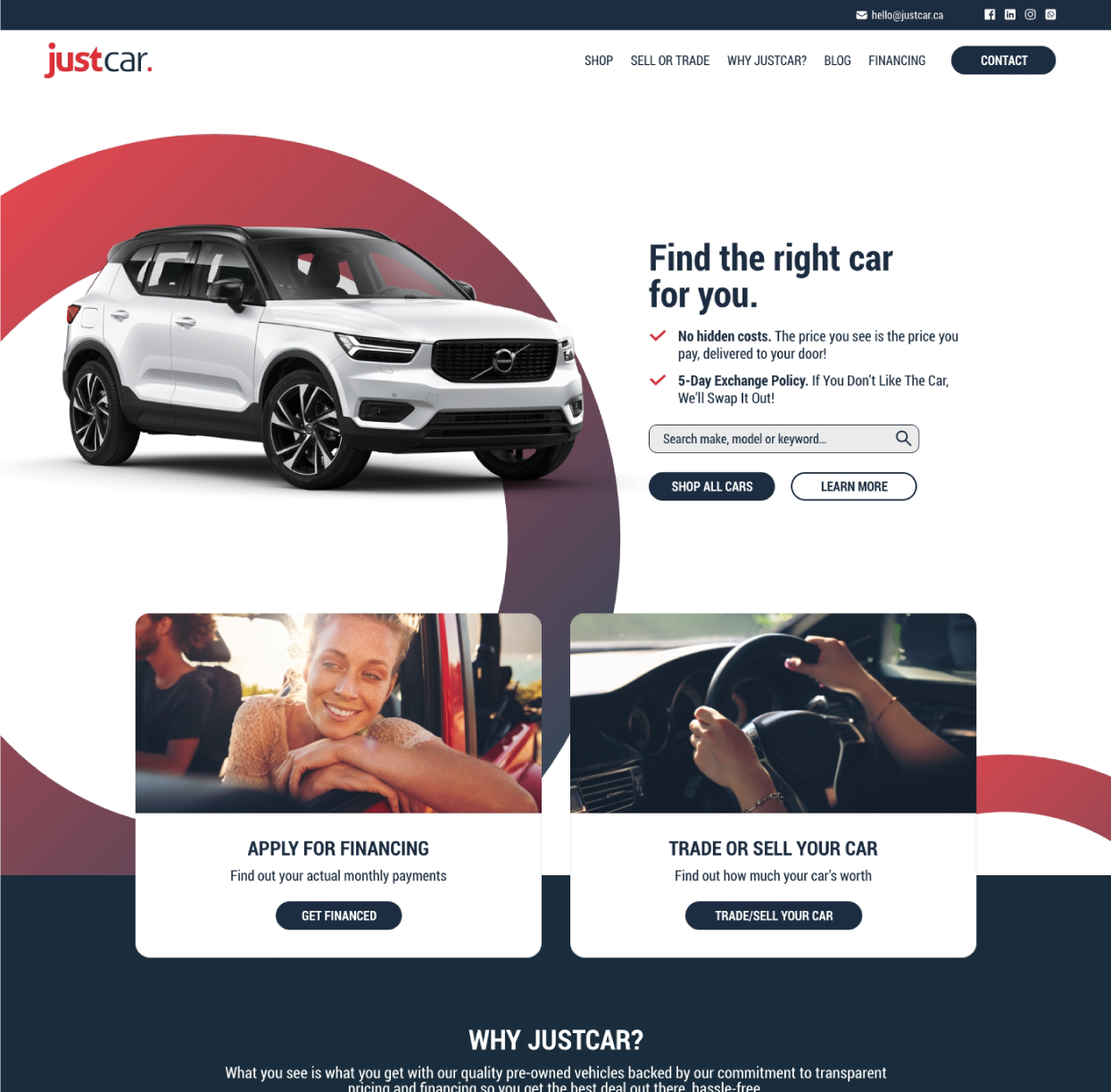 JustCar sought to develop a brand identity and a comprehensive digital presence that reflects their commitment to transparency and customer satisfaction. They needed a website that not only showcases their extensive inventory of vehicles but also makes it easy for customers to navigate through buying, selling, trading, and financing options.