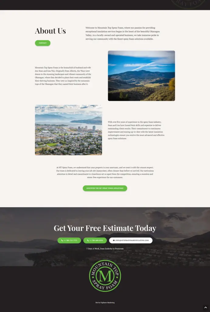 Mountain Top Spray Foam is a locally-owned and operated business nestled in the heart of the stunning Okanagan Valley. Founded by the dynamic husband-and-wife team, Sean and Lisa Way, the company delivers exceptional insulation services to their community. The Ways, originally from Alberta, were captivated by the breathtaking landscapes and vibrant community of the Okanagan. Inspired by the majesty of the local mountaintops, they planted their roots here, naming their thriving business after the scenic panorama. Mountain Top Spray Foam symbolizes their commitment to providing the finest spray foam solutions available, reflecting their passion and the robust energy of the Okanagan environment.