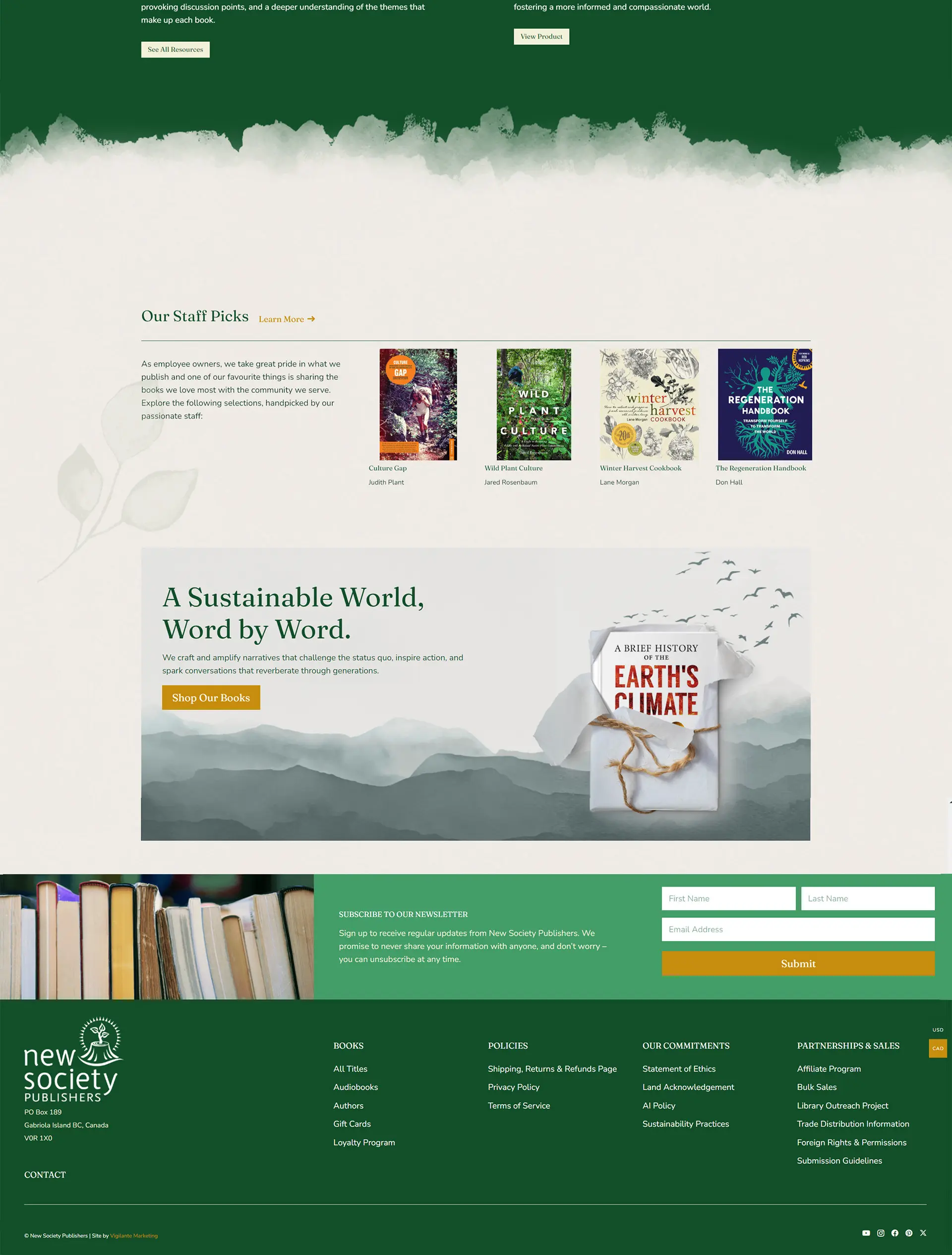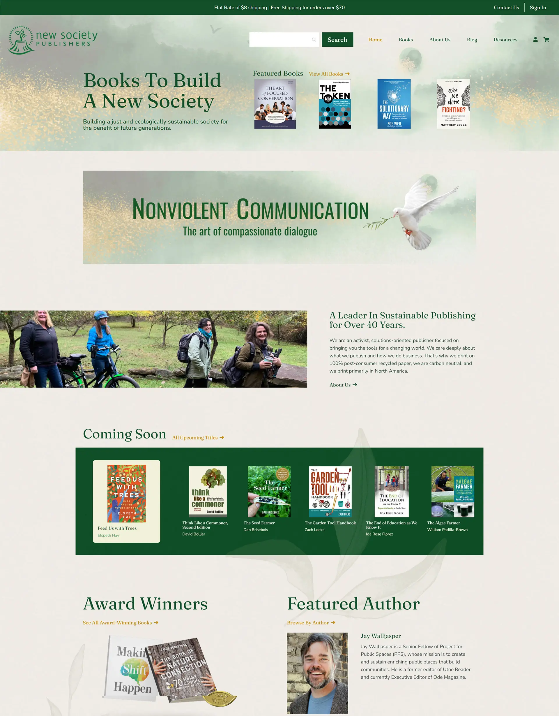 New Society Publishers was looking for a custom, e-commerce website they could run themselves. Tired of trying to get what they needed their website to be through Shopify or Wix, New Society wanted to create their dream website that could be easily managed by themselves. As a book publisher, New Society needed to update its scattered organization of books to allow customers to easily find what they were looking for. New Society also needed colors that represented its brand mission of “building a just and ecologically sustainable society for the benefit of future generations”, with a consistent look and feel throughout the website.