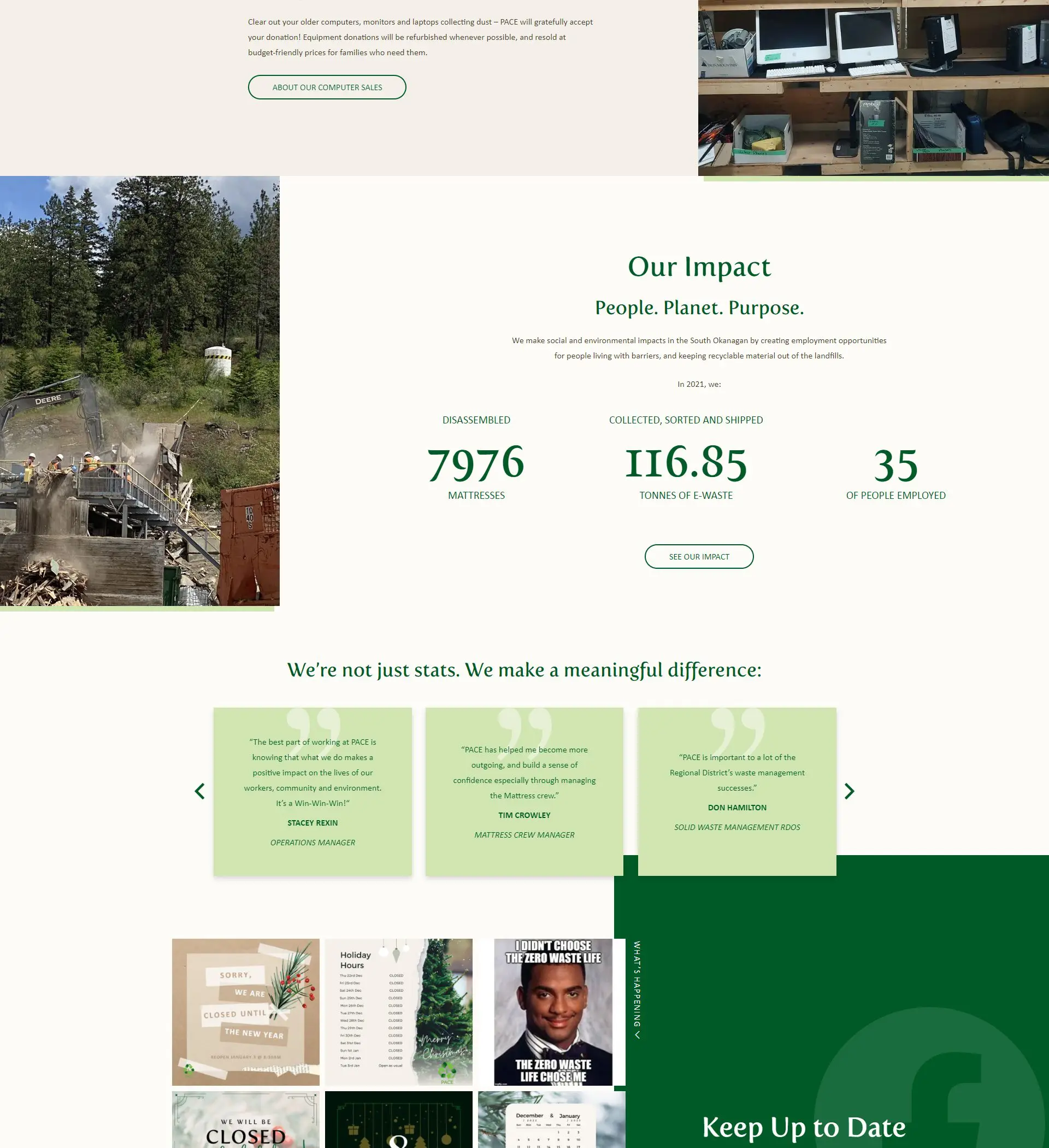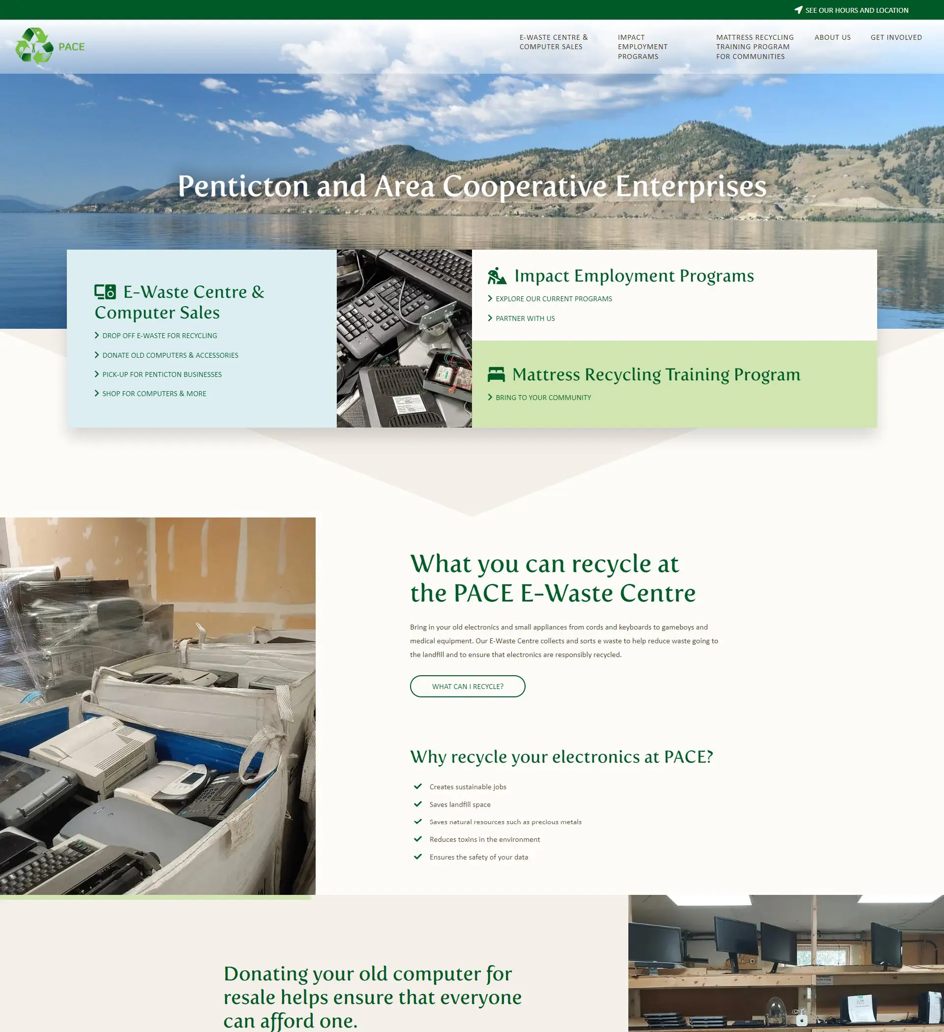 PACE Penticton (Penticton Area Cooperative Enterprises) is a worker-owned cooperative in operation for over 20 years. As a self-funded, for-profit social enterprise, the organization has become the go-to resource for recycling in the Penticton area. The valued employees, who live and work through barriers, make this possible. PACE offers inclusive and supportive employment opportunities. Its E-Waste Centre collects and sorts e-waste to help reduce waste going to landfills and to ensure that electronics are responsibly recycled. By recycling electronics with PACE, individuals can create sustainable jobs, save landfill space, conserve natural resources, reduce toxins in the environment, and ensure the safety of their data.