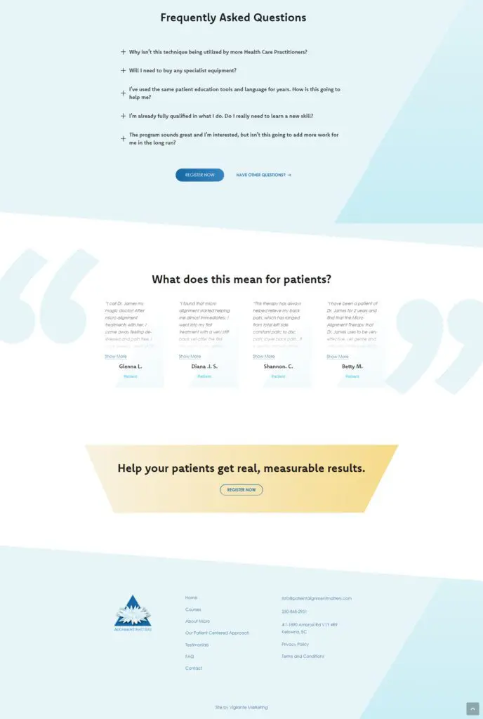 The VM team and Dr. James worked together to re-create and re-invent the Patient Alignment Matters brand and online presence. We utilized her existing content from the landing page site and mapped it out to build a fully functional e-learning website.
