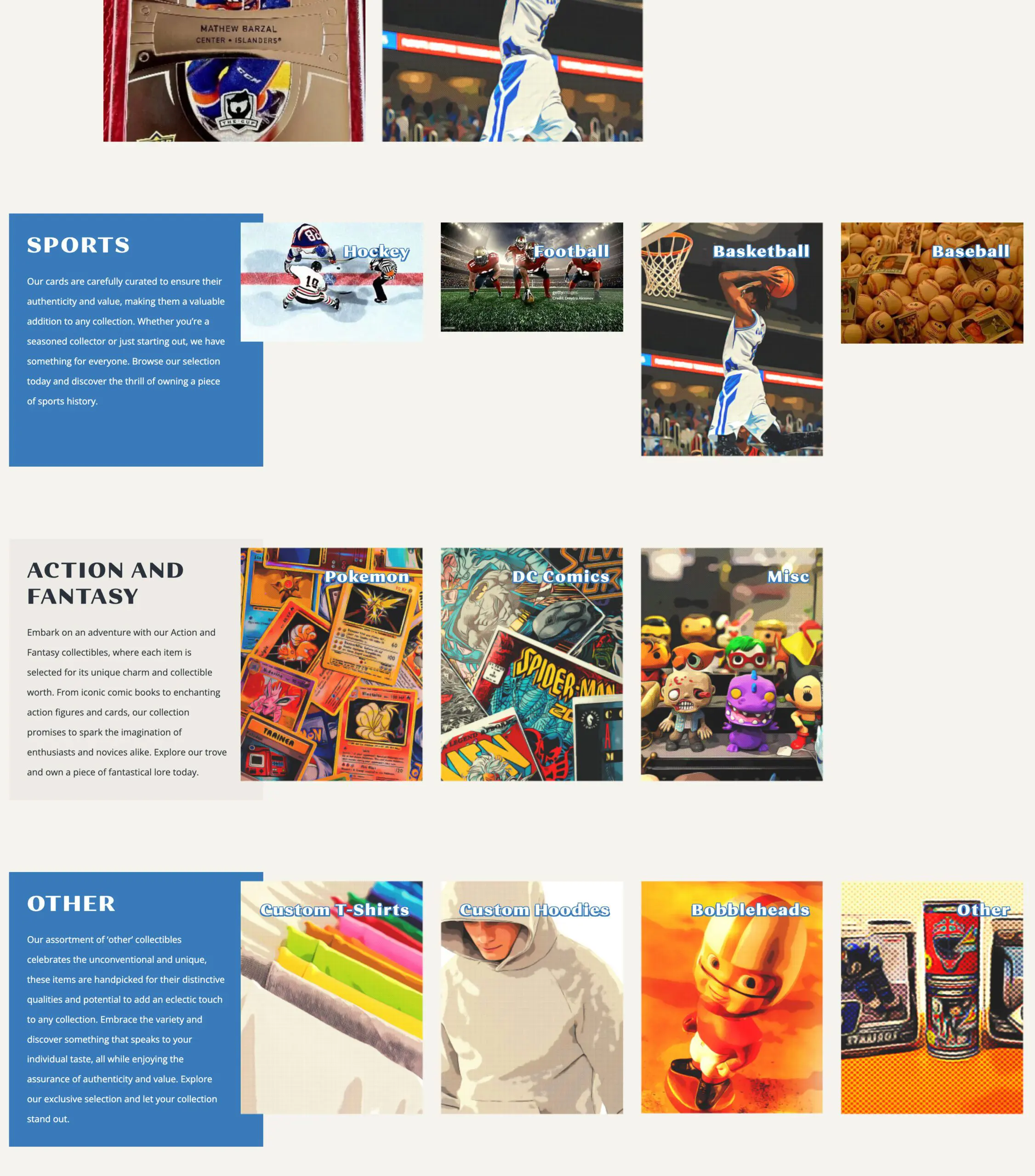 Our team embraced Turnagain Collectibles’ vision and transformed it into a vibrant and functional online marketplace. Our designer, Tina, meticulously crafted the website’s branding, selecting a palette of blue, orange, and warm greys to reflect the Turnagain River and evoke a welcoming, antique atmosphere. The site’s design incorporated muted tones to mirror the nostalgic essence of collectibles, with fonts that were both bold and elegant, featuring a vintage flair. This aesthetic was complemented by half-tone textures and comic book filters on category images, ensuring that the site stood out while remaining intuitive and reminiscent of familiar buying-and-selling platforms.