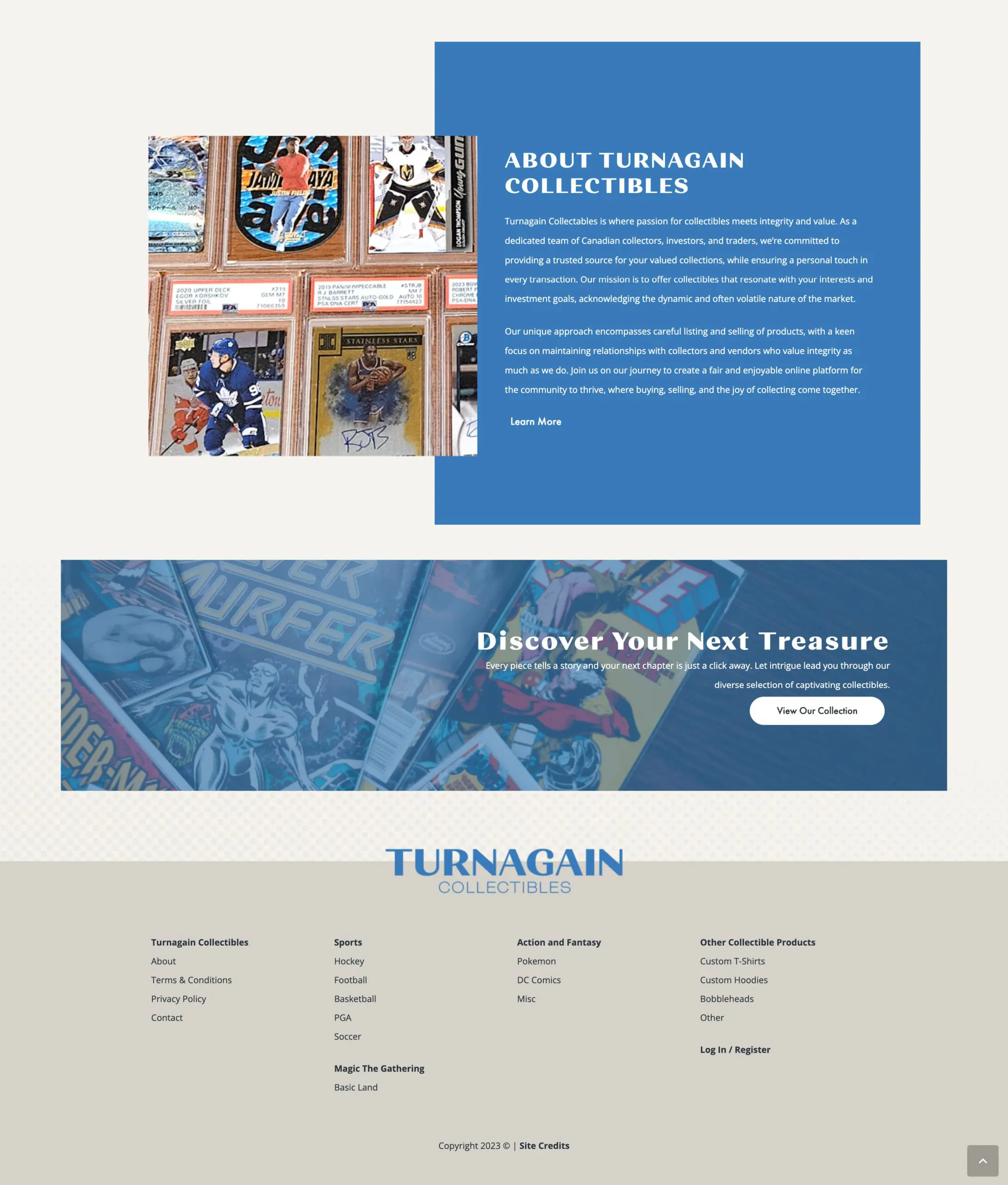 Turnagain Collectibles is a group of Canadian enthusiasts who specialize in collecting, investing, and trading a variety of collectibles. Their primary focus is on serving other mid-level collectors, investors, and traders, striving to be a trusted provider in this niche market. They are deeply committed to personal involvement in the process, ensuring that their customers receive items of value that enhance their collections.