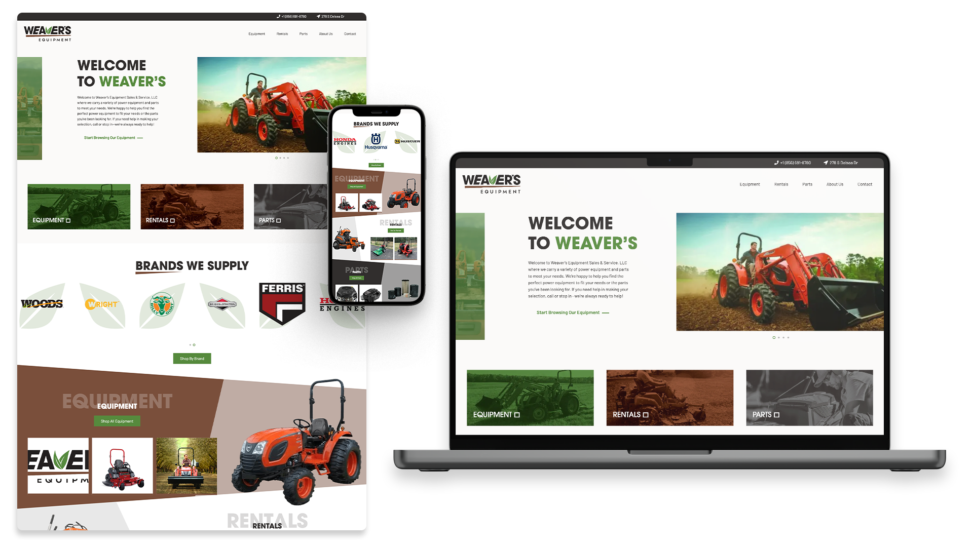 Weaver Equipment came to us with a website that had a templated shop functionality and poor organization, which made it hard to navigate for their customers. They needed a modernized website that would align with the new branding we created for them and an improved user experience. In addition, we recognized the need for a unique and personalized shop layout that sets them apart from other heavy equipment sales and rental sites.