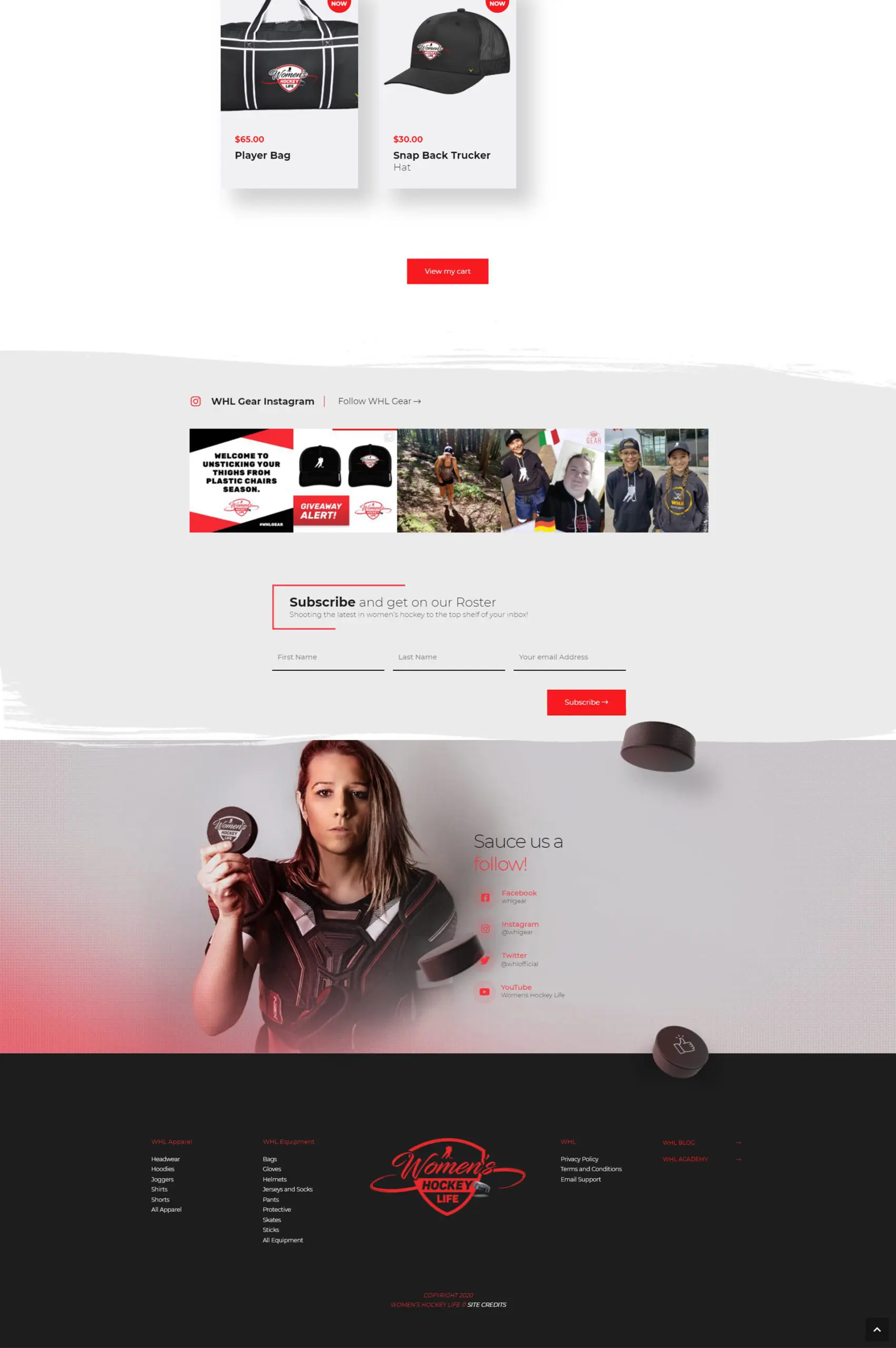 Women’s Hockey Life reached out to us to design and build a new website to promote their custom line of Women’s Hockey Life apparel. Initially, they were selling their products on a 3rd party vendor site but they had a goal of creating a more legitimate, front-facing, branded website to house the apparel that would still be sold through the 3rd party partners.